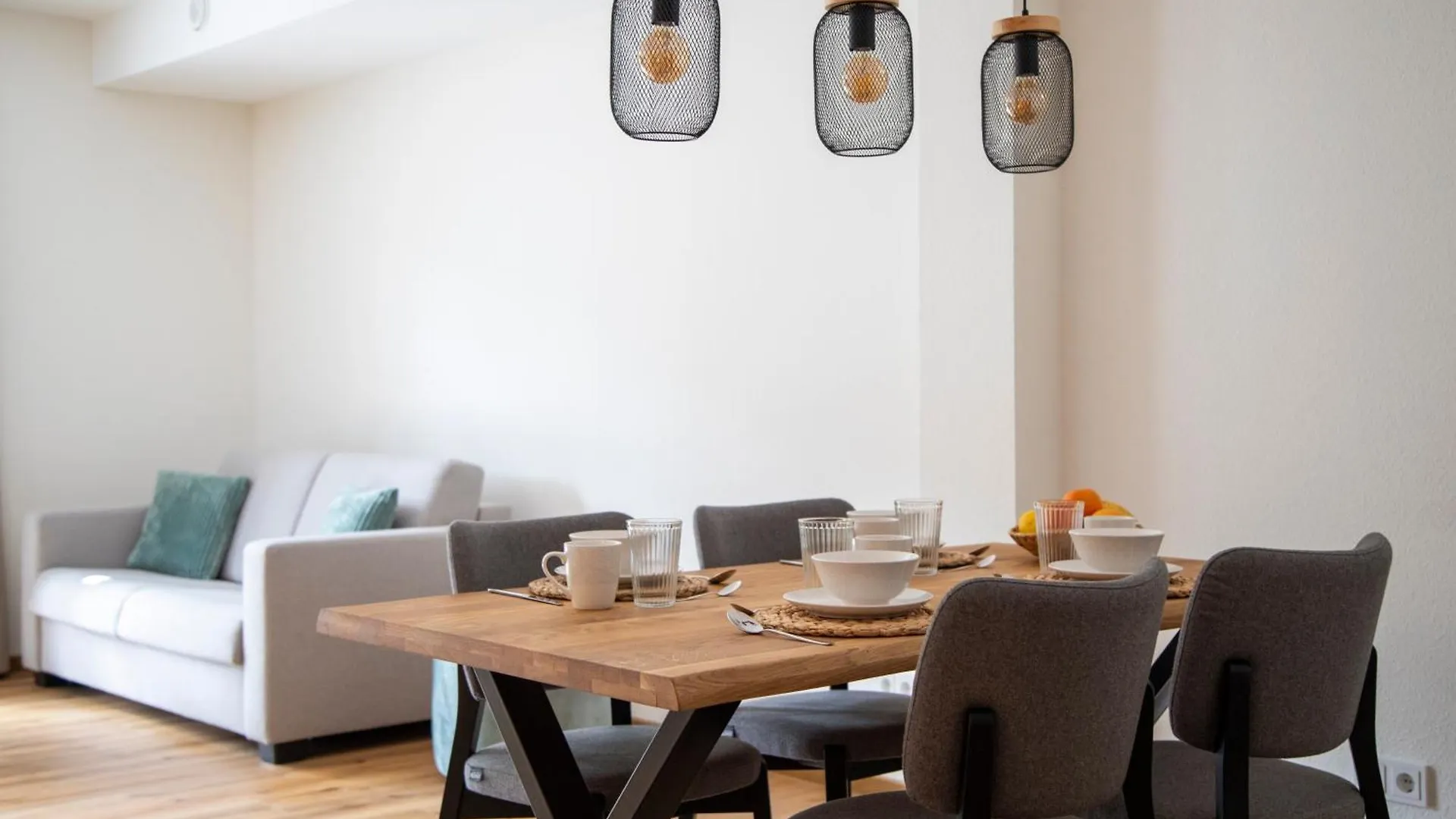 Zusätzlich zu den Annehmlichkeiten für Selbstversorger wie eine komplette Küche bietet das Apartment seinen Gästen einen Essbereich.