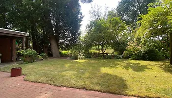 Haus, idyllischer Garten, Garage