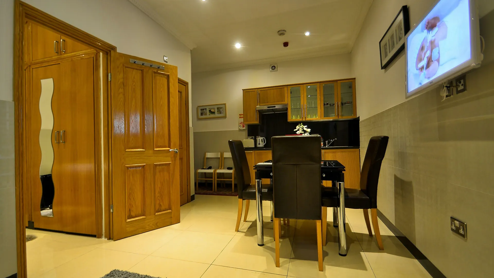 L'Hyde Park Apartments offre un angolo cottura attrezzato insieme con un frigo, un bollitore e un tostapane a disposizione degli ospiti.